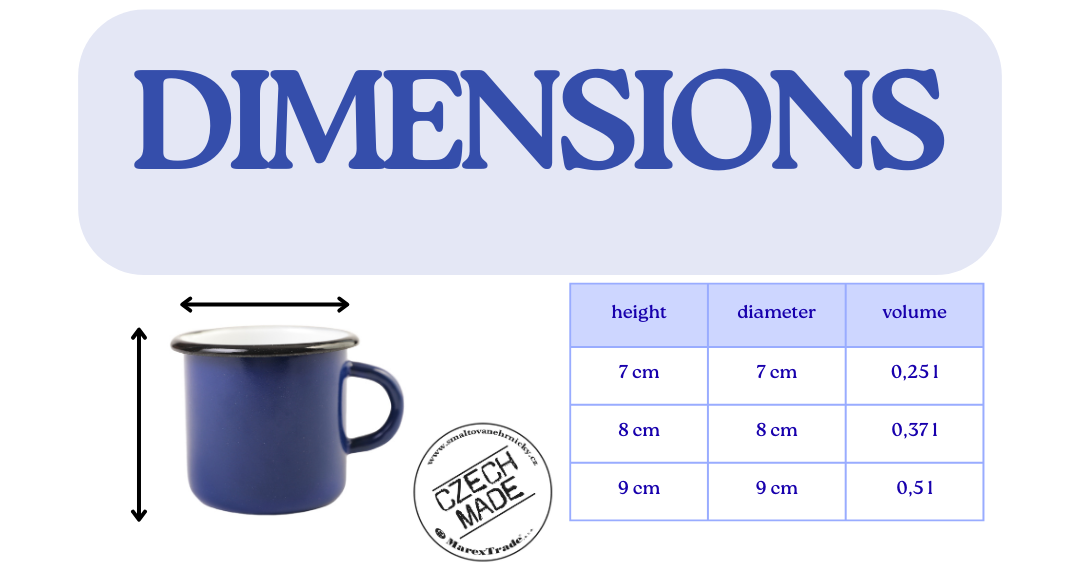 You can order CZECH enamelled mug in several different sizes. We can offer you following sizes of mugs: